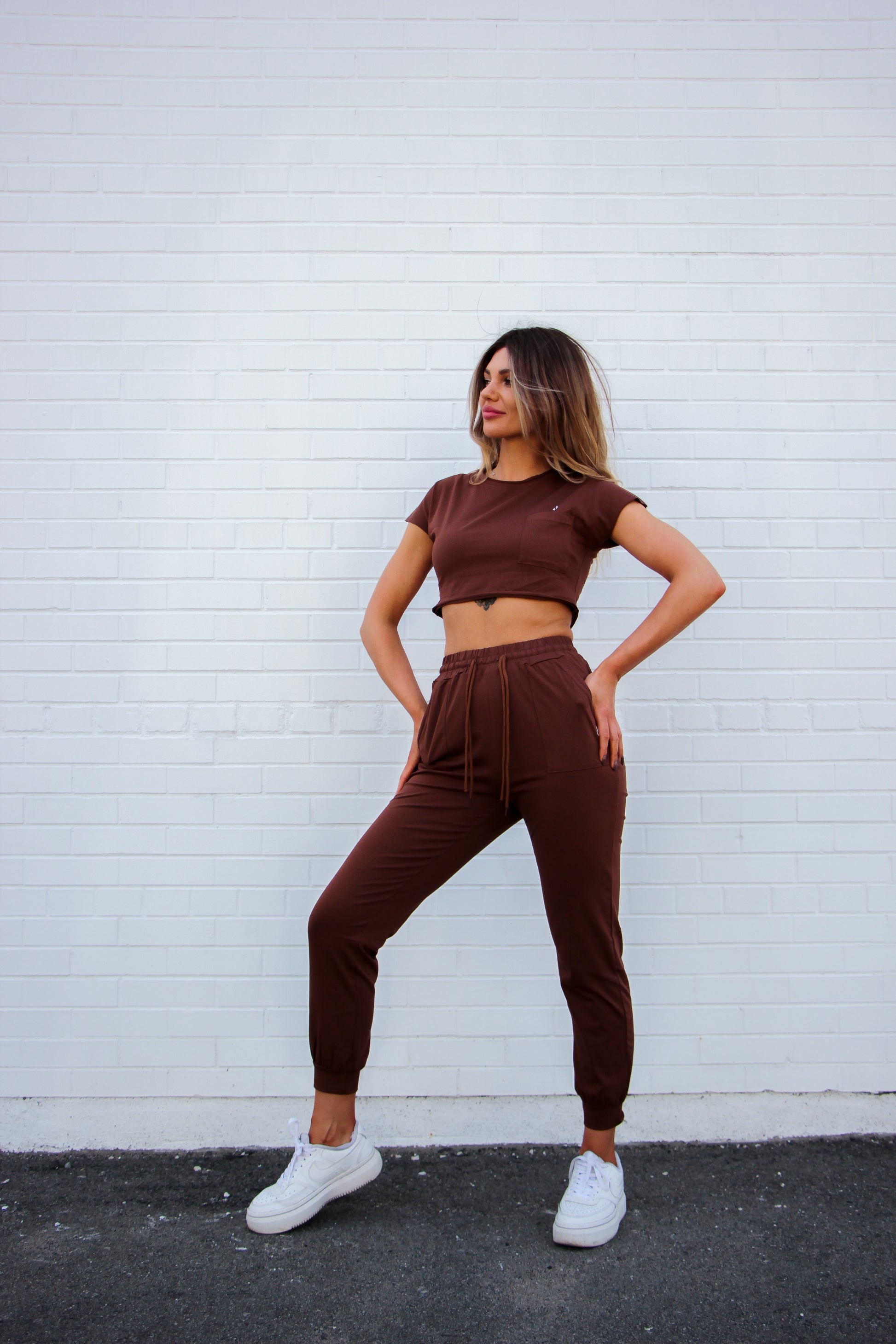 Chilling around never felt so comfy with this lounge set, super soft and light weight fabric will want you to wear it 24/7, high waisted, adjustable drawcord, ribbed waistband this design is just amazing.